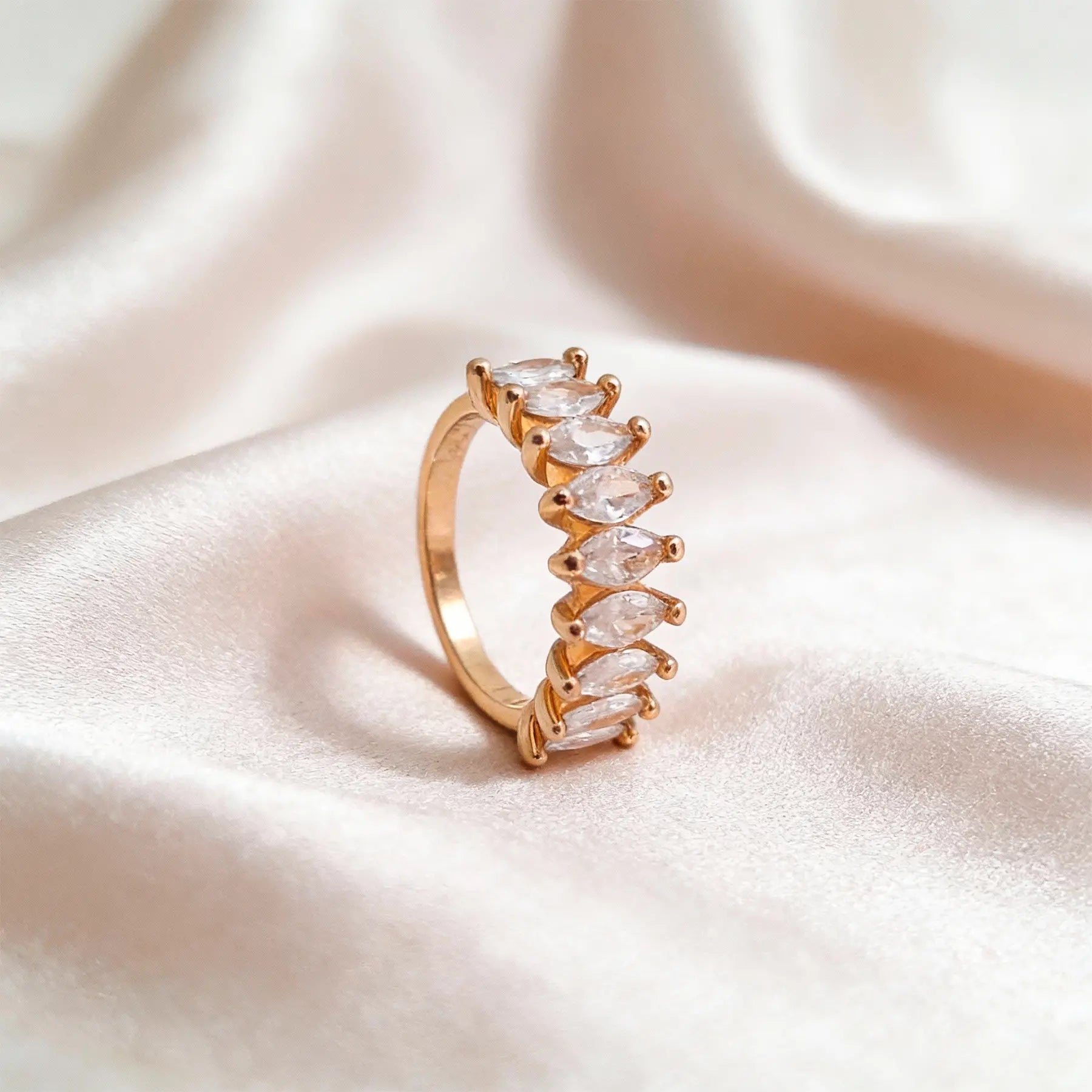 Ideal para ocasiões especiais ou para adicionar um toque de glamour ao look diário, o Anel Cristal Nove Pedras Navete é confortável, durável e versátil, combinando facilmente com outros acessórios. Sua estrutura robusta e refinada faz desta peça um verdadeiro destaque no seu conjunto de joias.