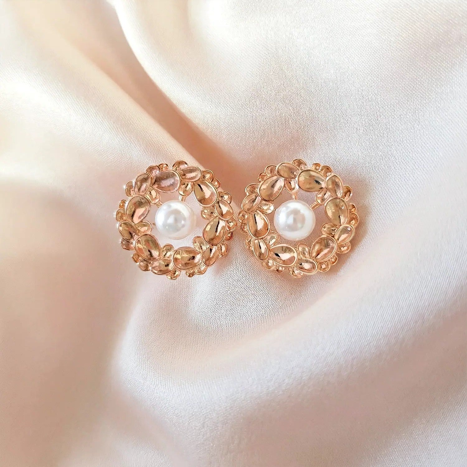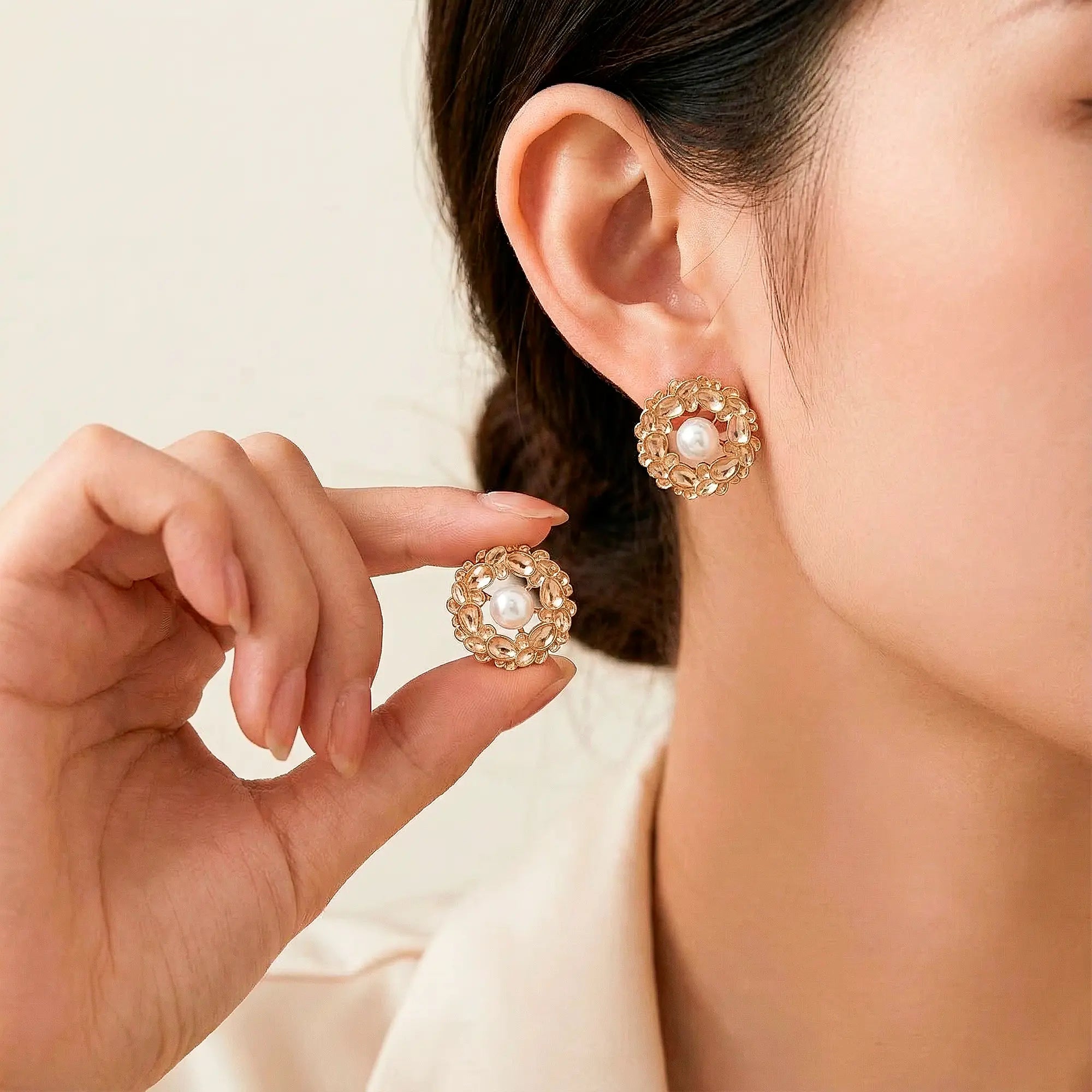 💎 Este brinco redondo apresenta um design exclusivo com ramos delicados que envolvem uma pérola genuína no centro, criando uma composição harmoniosa e elegante.