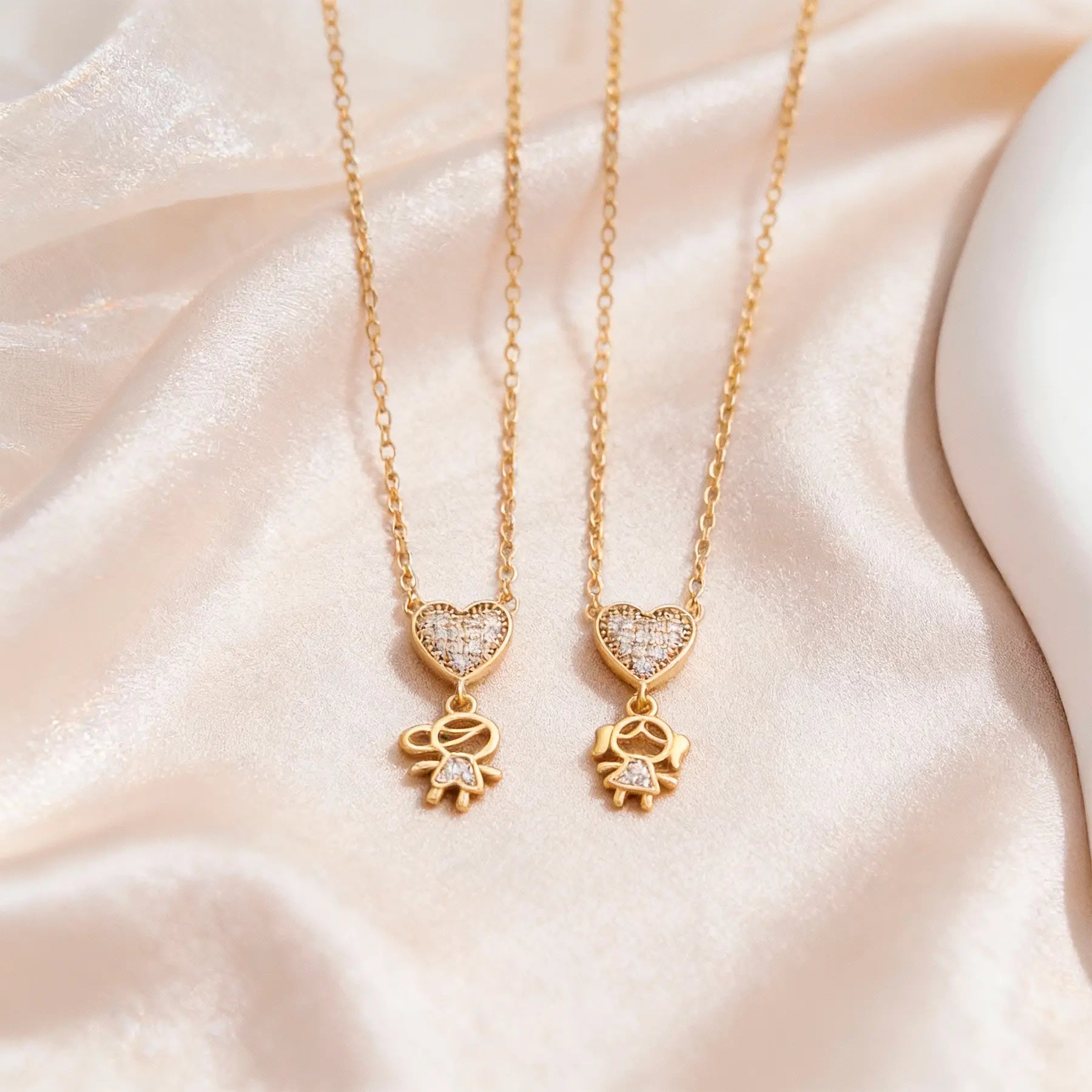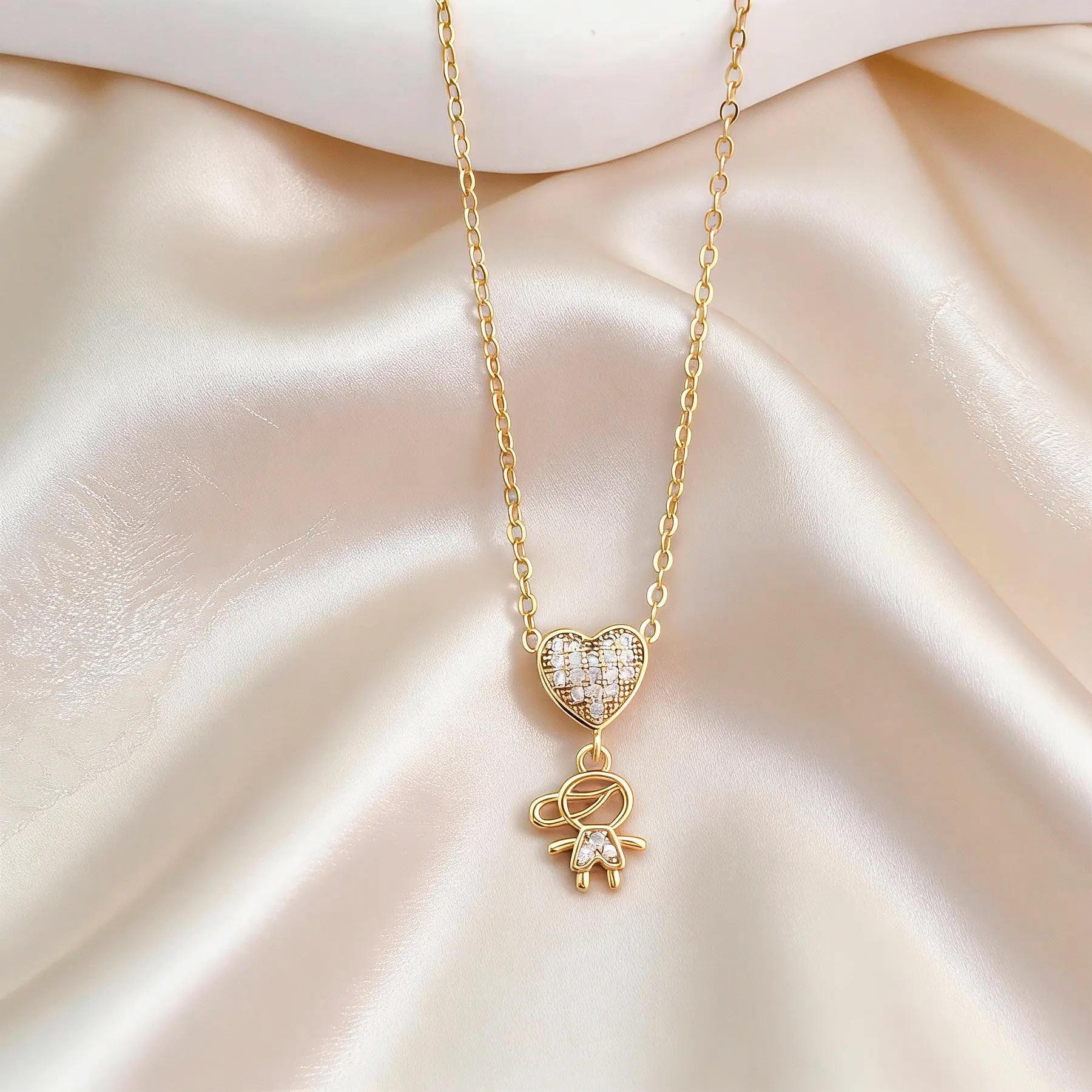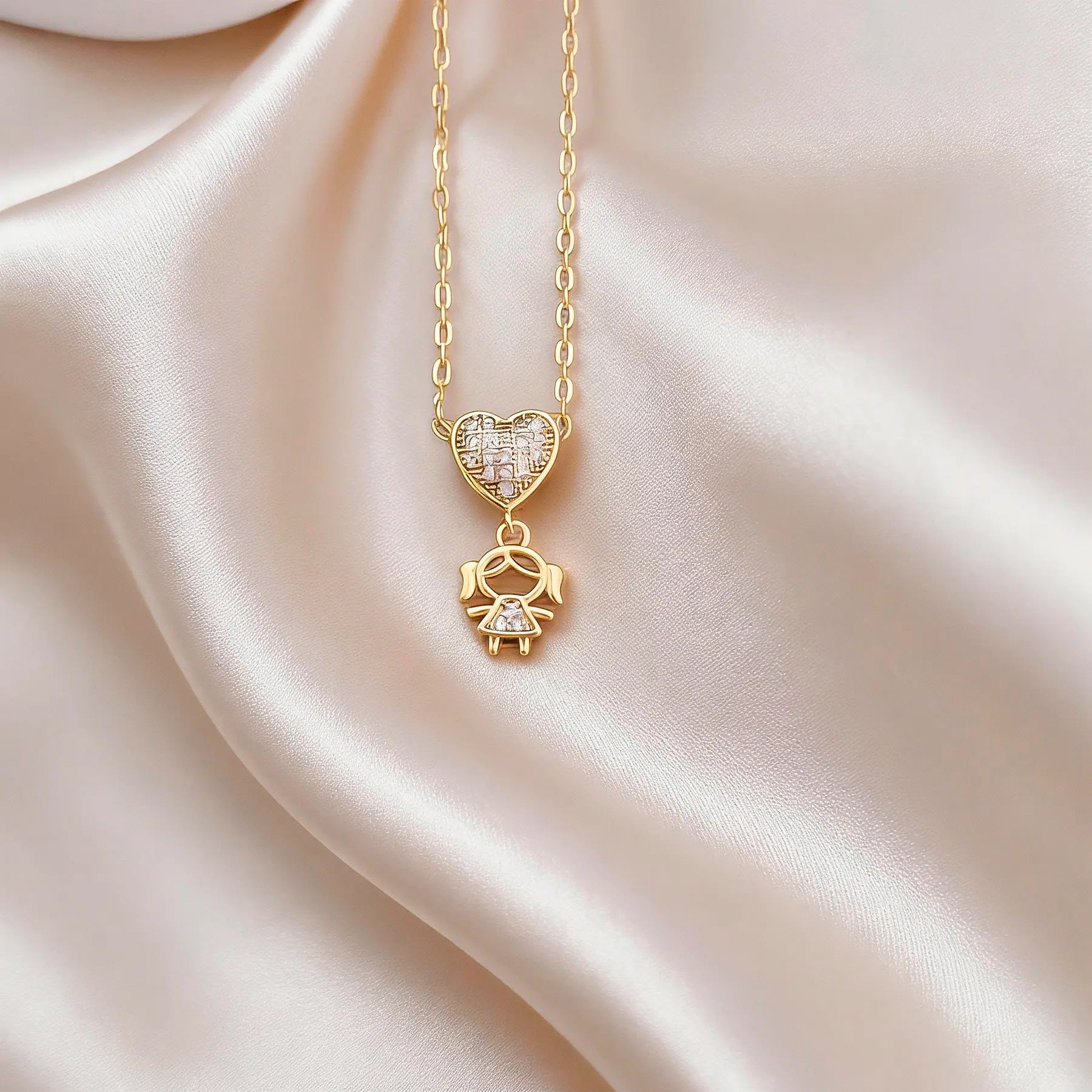 Colar com pingente de filho(a) banhado a ouro 18K, perfeito para eternizar o amor entre mãe e filho(a). Uma joia delicada, hipoalergênica e cheia de significado, ideal para presentear em datas especiais como o Dia das Mães. Leve com você quem mais ama, todos os dias.