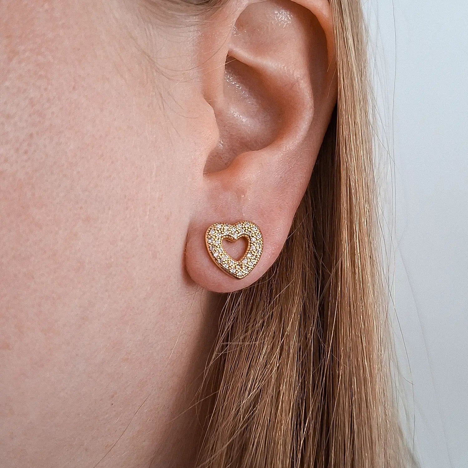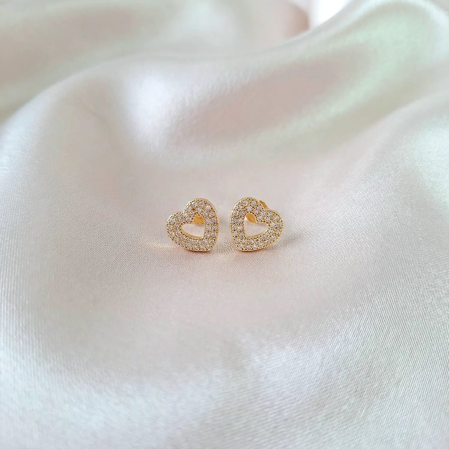 ✨ Brinco Coração Cravejado em Ouro 18k Elegância e brilho em um único acessório. Nosso Brinco Coração combina design romântico com sofisticação moderna.
