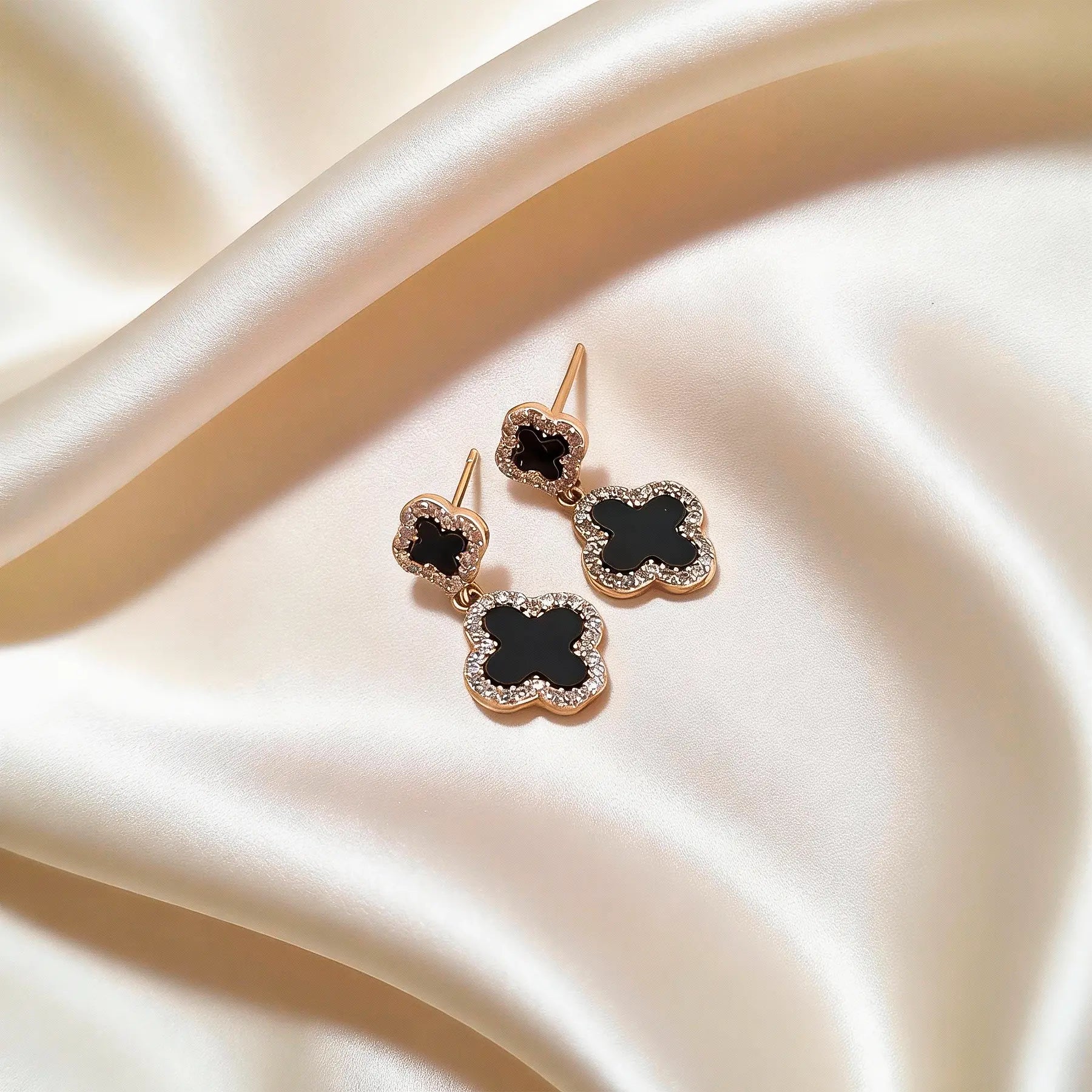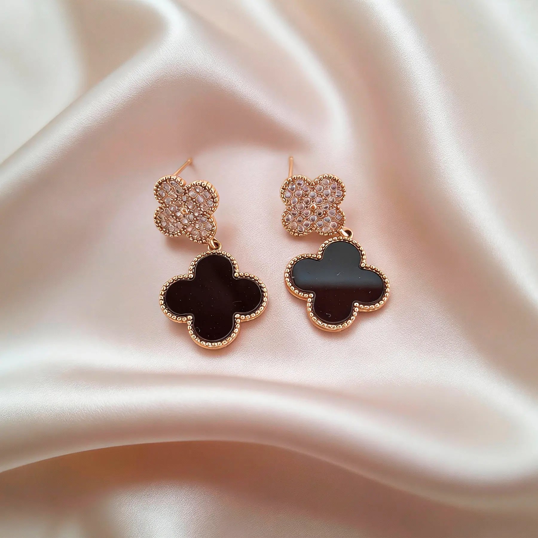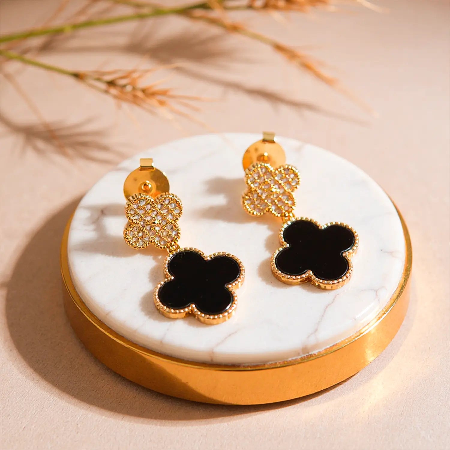 O Brinco Trevo Pendurado Preto é um acessório elegante e cheio de significado. Inspirado no símbolo do trevo de quatro folhas, essa peça representa sorte, equilíbrio e boas energias, tornando-se um amuleto perfeito para o dia a dia.