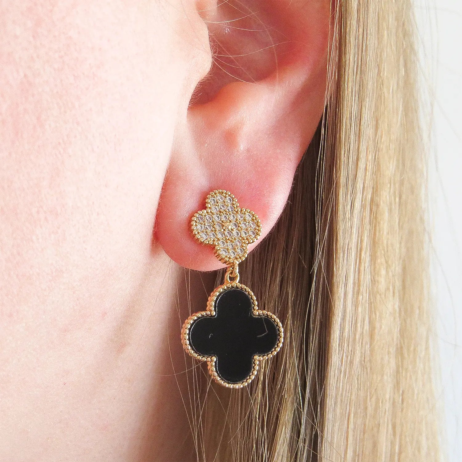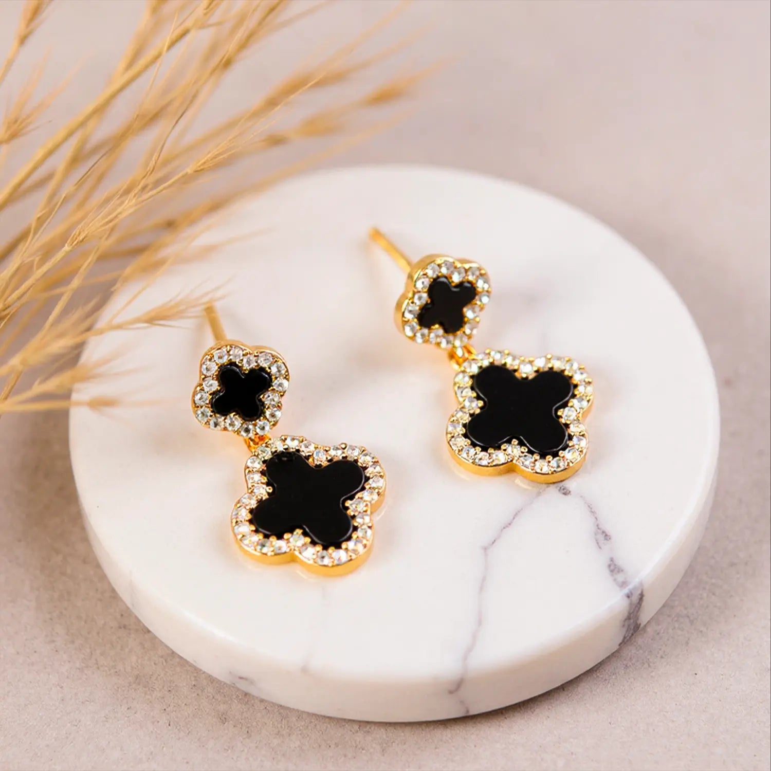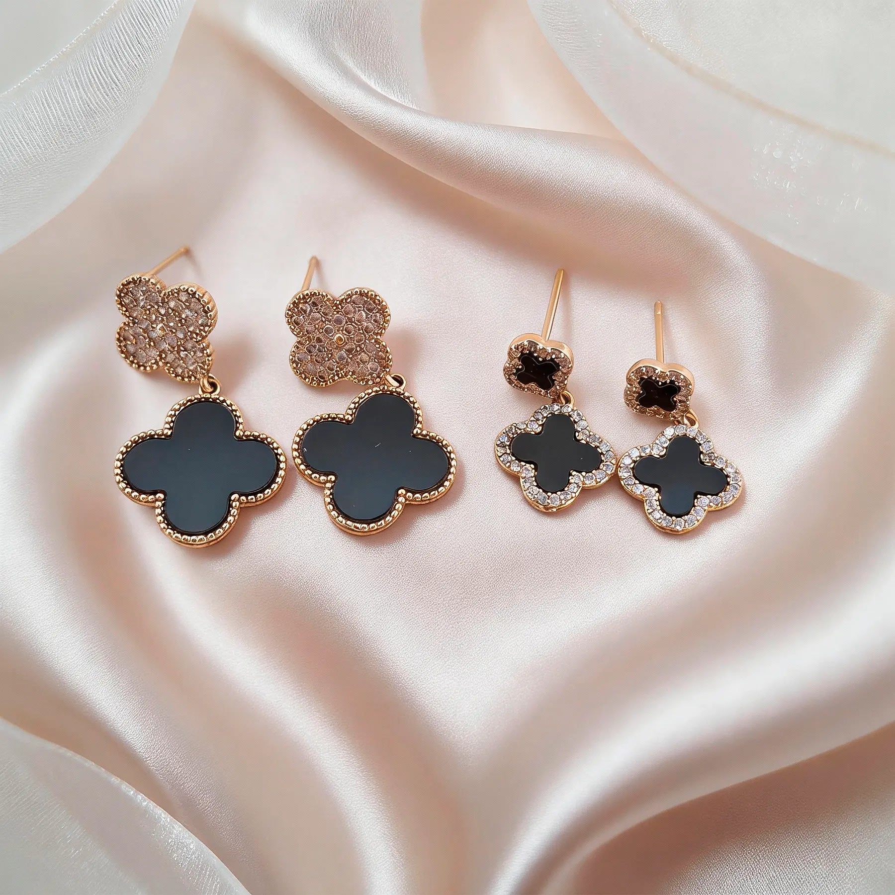 O Brinco Trevo Pendurado Preto é um acessório elegante e cheio de significado. Inspirado no símbolo do trevo de quatro folhas, essa peça representa sorte, equilíbrio e boas energias, tornando-se um amuleto perfeito para o dia a dia.