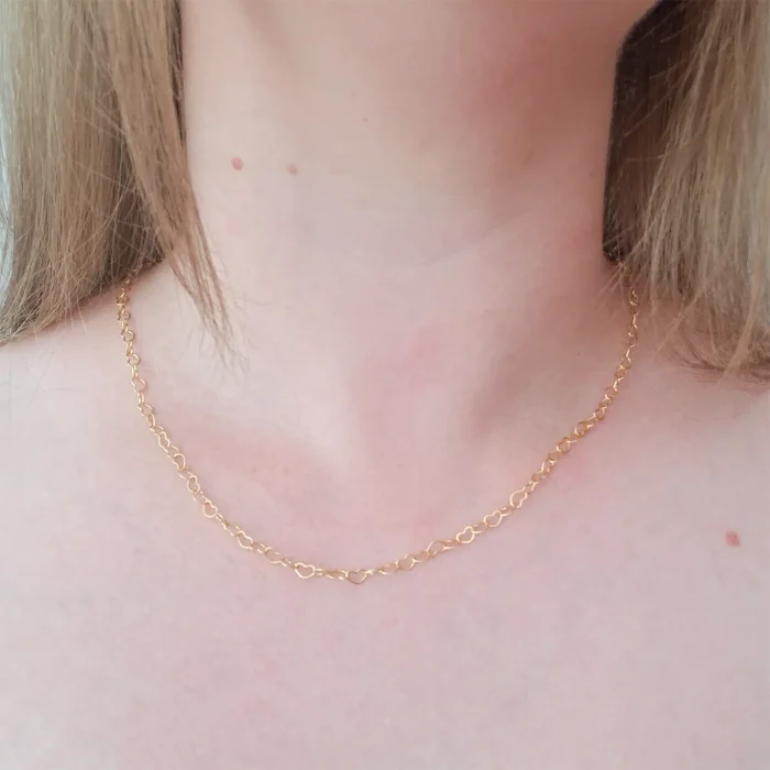 O Colar Elo Coração Dourado é a peça perfeita para quem ama acessórios delicados e cheios de significado. Seu design é composto por elos em formato de pequenos corações, criando um visual romântico, leve e extremamente elegante. Ideal para quem busca um colar versátil que combine com todas as ocasiões.