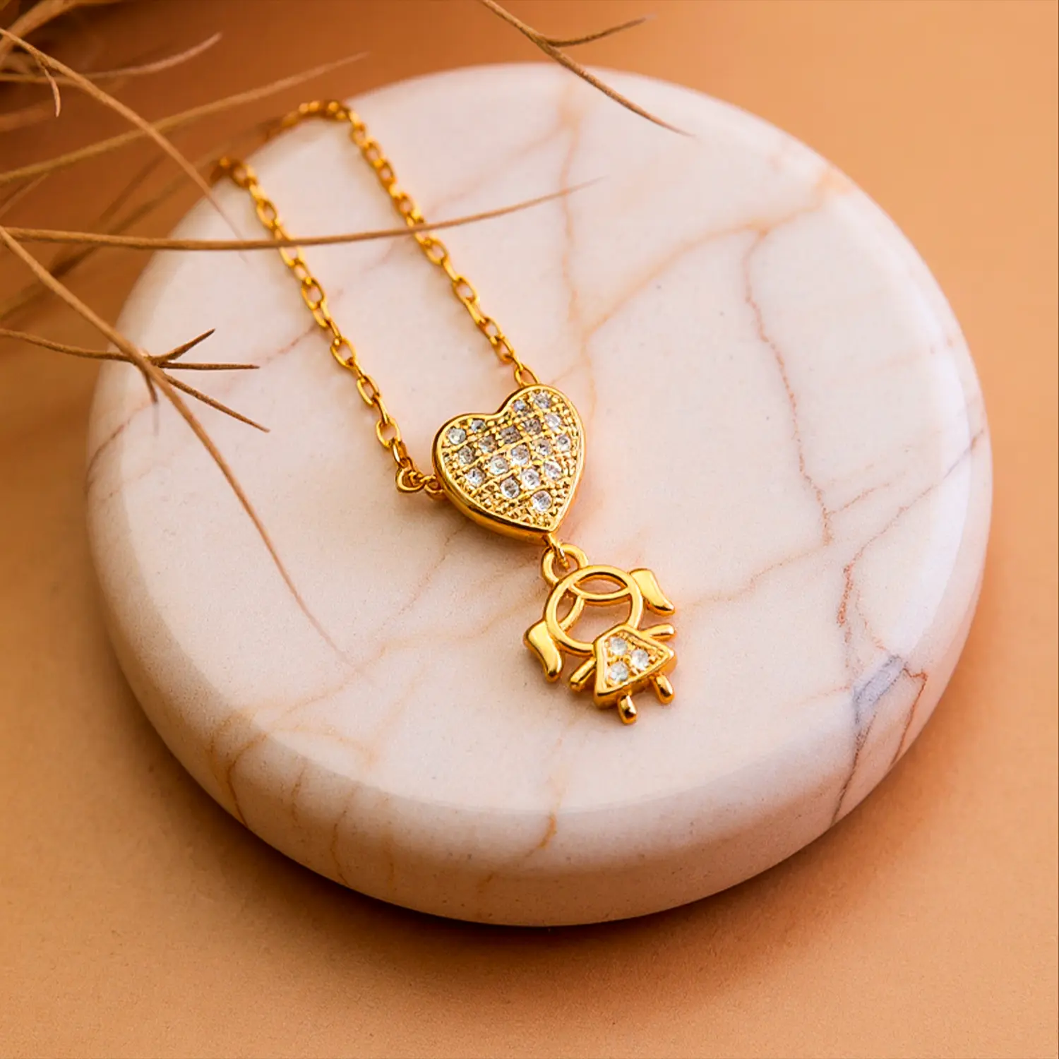 Colar com pingente de filho(a) banhado a ouro 18K, perfeito para eternizar o amor entre mãe e filho(a). Uma joia delicada, hipoalergênica e cheia de significado, ideal para presentear em datas especiais como o Dia das Mães. Leve com você quem mais ama, todos os dias.